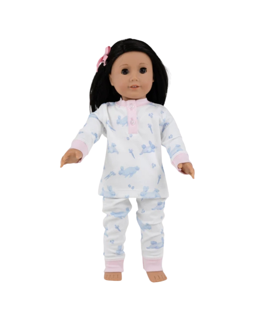 Designed to coordinate beautifully with big sister's pajama collection, this charming doll ensemble features an all-over blue bunny print that brings whimsy and cohesion to playtime. Perfect for creating matching moments between child and cherished companion, the outfit celebrates the joy of coordinated style with an elegant, thoughtful touch.
