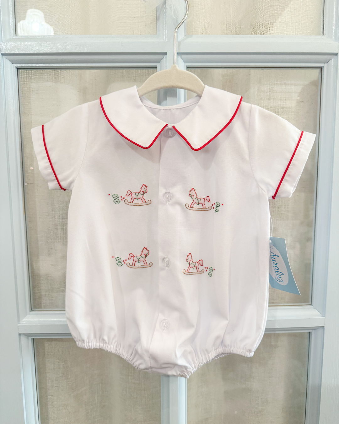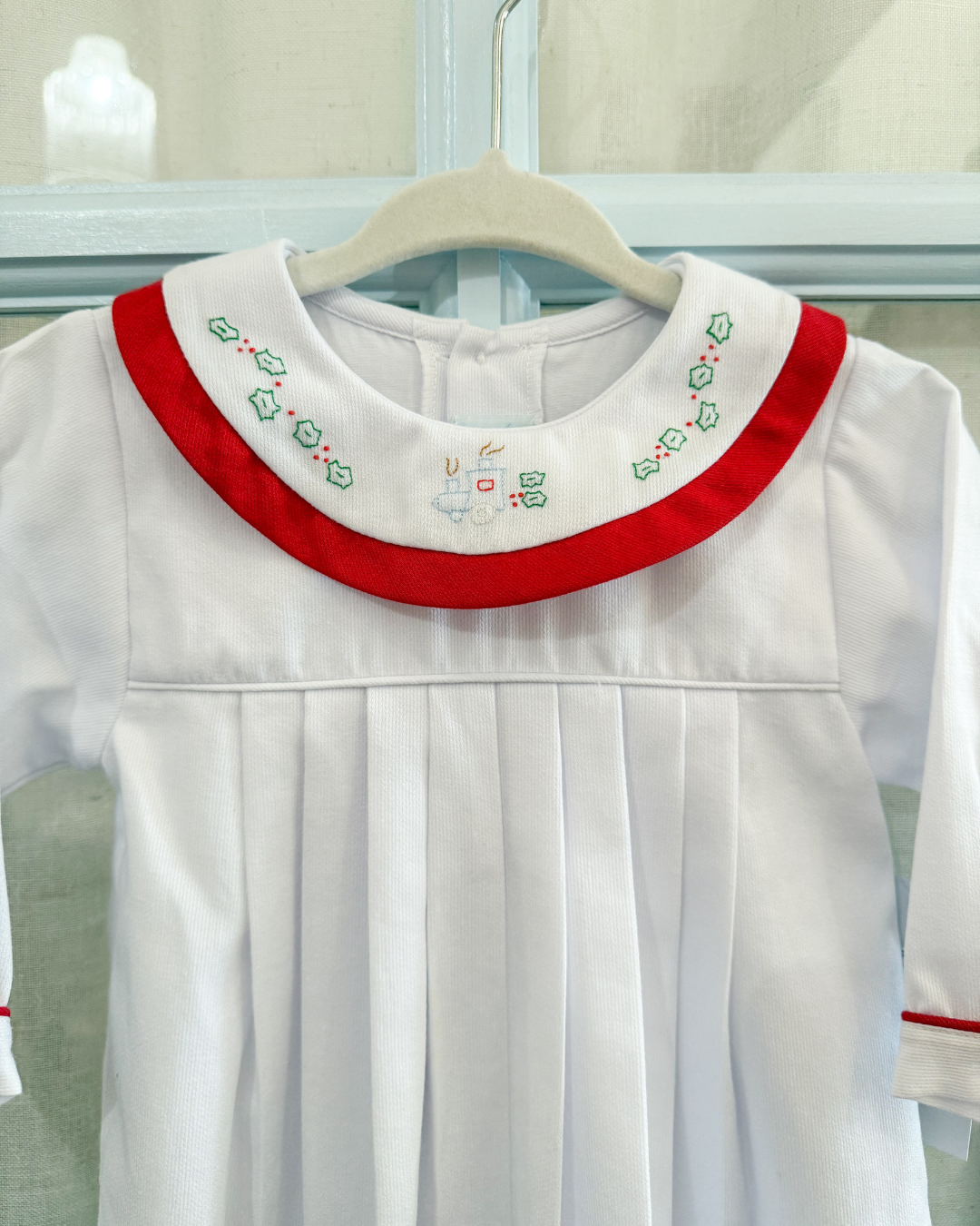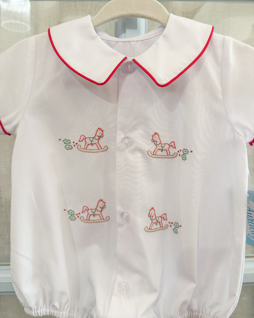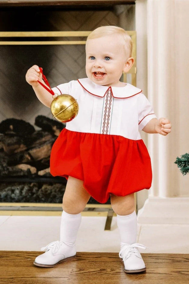 Meet Middleburg, a rich plaid in deep red, navy, and hunter green that perfectly pairs with our classic navy pieces. With a nod to vintage school prep, this collection is quintessential fall at its finest! Our popular Davant Bubble features button tabs, tonal piping, and darted pleats at the front.